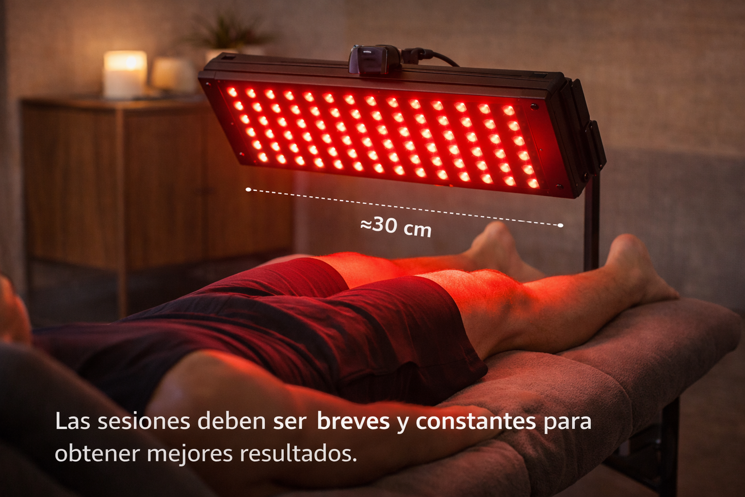 - Mantén una distancia de 20 a 40 cm entre la luz y la piel.
