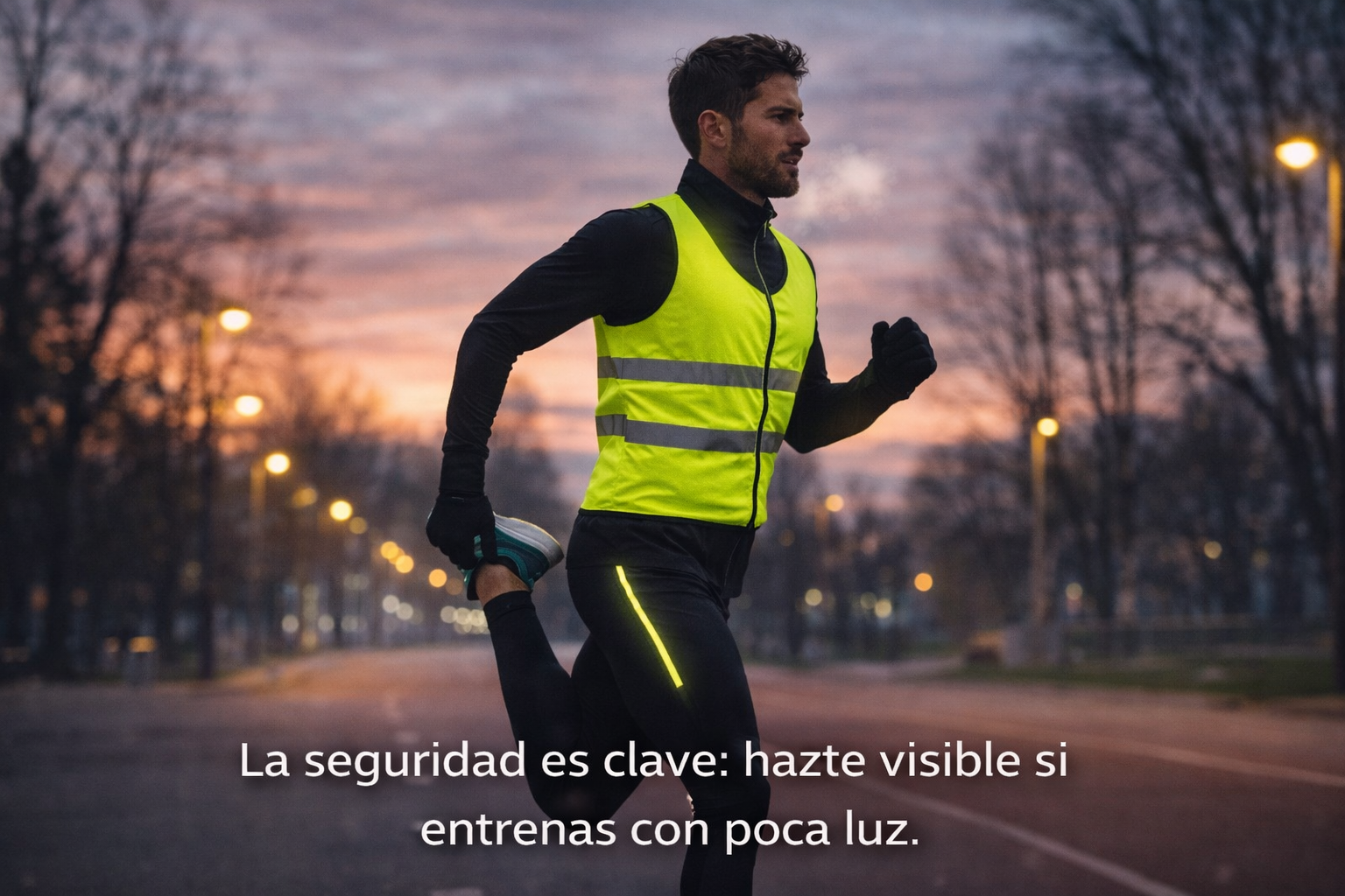 Si entrenas al amanecer o al atardecer, usa ropa reflectante o con detalles de alta visibilidad.