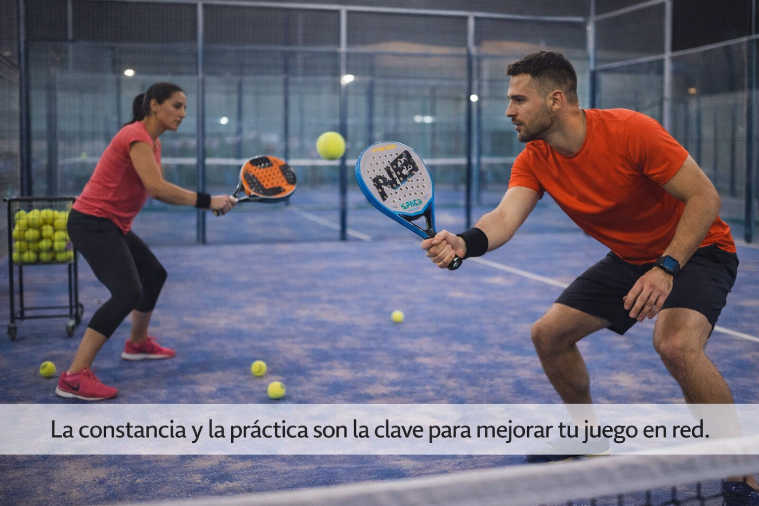 Practica voleas repetitivas con carro de bolas, alternando derecha y revés, y trabaja la coordinación con tu pareja.