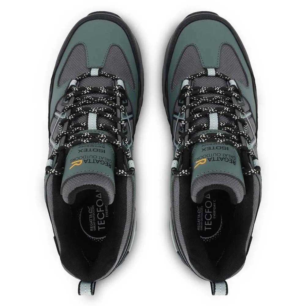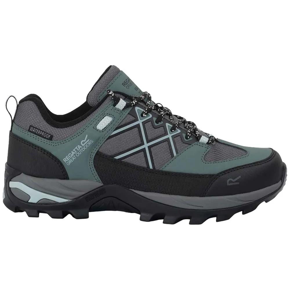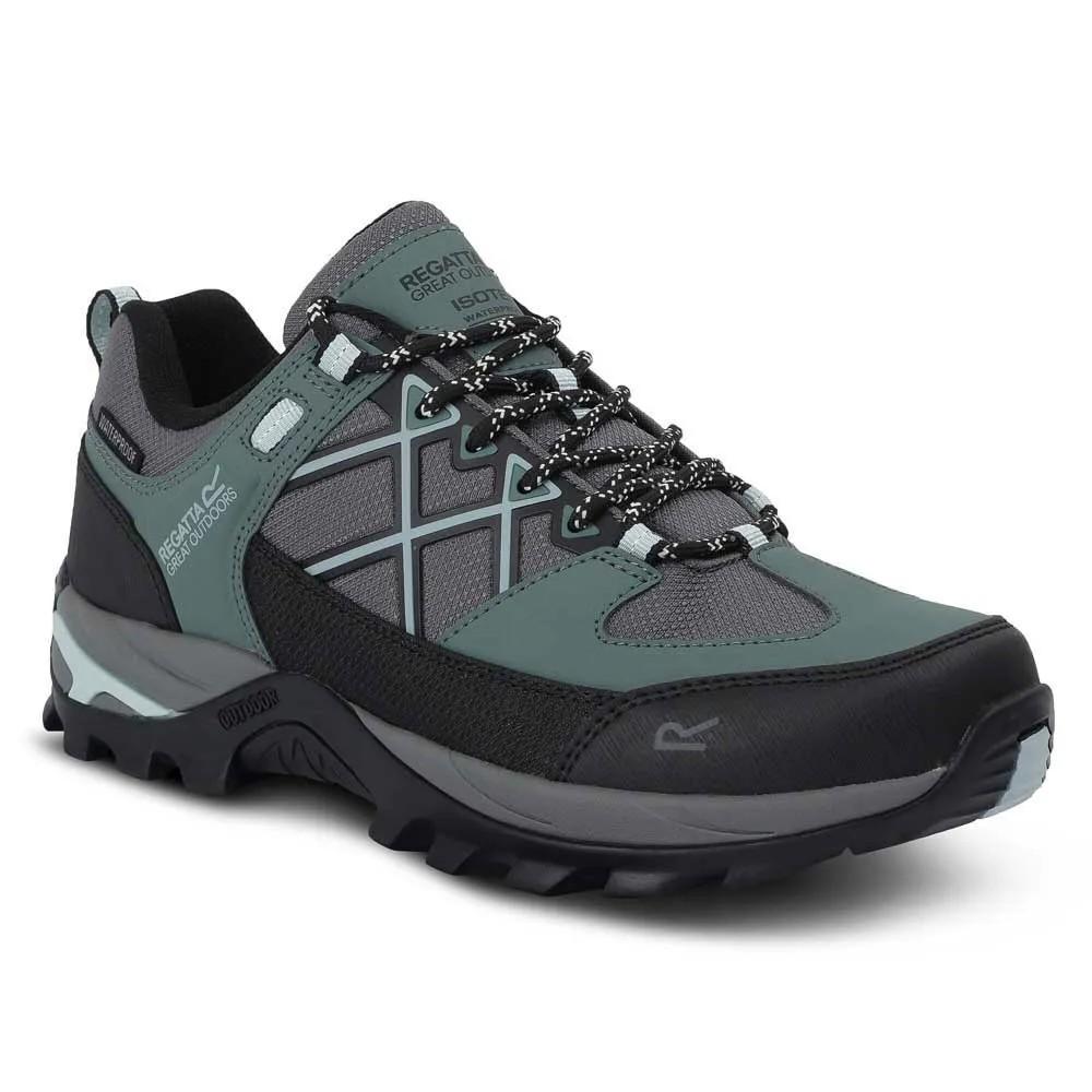 Zapatillas de senderismo para mujer Regatta Samaris III Low RWF835: diseño de caña baja ideal para rutas ligeras, con membrana Isotex impermeable y transpirable. Suela de goma antideslizante, amortiguación EVA y plantilla cómoda Tecfoam. Parte superior resistente con refuerzos en puntera y talón.