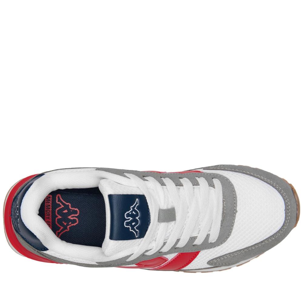 La suela de goma duradera y antideslizante garantiza agarre y estabilidad en cada paso, mientras que el cierre con cordones permite un ajuste seguro y personalizado. El icónico logo Kappa en el lateral resalta su identidad deportiva y contemporánea.