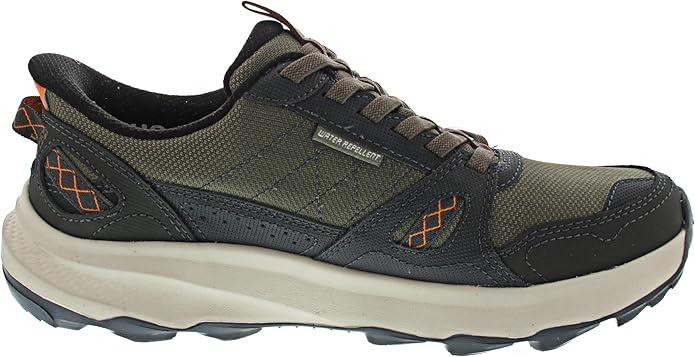 Zapatillas para hombre estilo trail casual con diseño “hands-free” sin necesidad de atar los cordones. Cuentan con parte superior de malla rip-stop y superposiciones de duraleather para mayor resistencia, plantilla con tecnología Memory Foam de Skechers para comodidad duradera, suela de tracción al aire libre y talón con almohadilla de soporte («Heel Pillow») que fija el pie con firmeza.