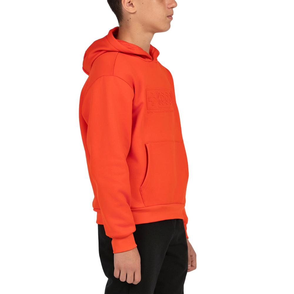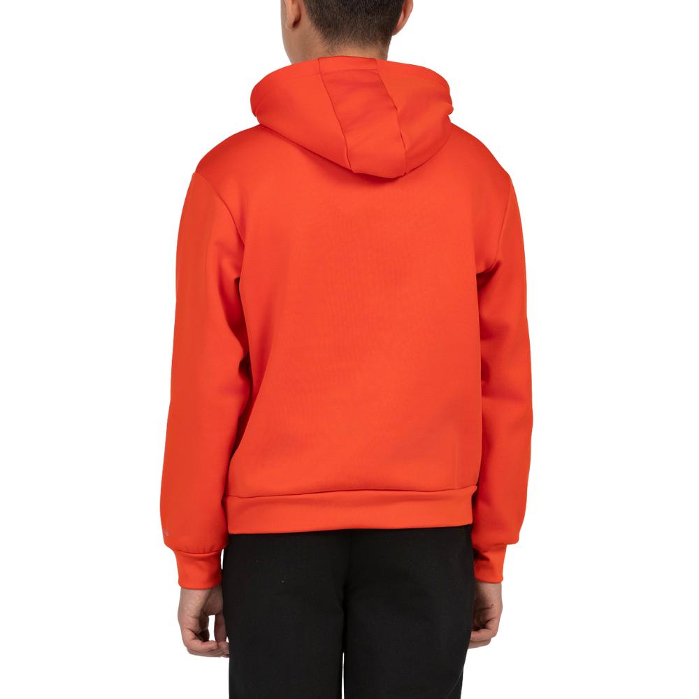 Sudadera +8000 INDIRA Niño Naranja. Con capucha forrada, logo 3D, interior perchado y bolsillo canguro. Calidez, estilo y resistencia para actividades outdoor.